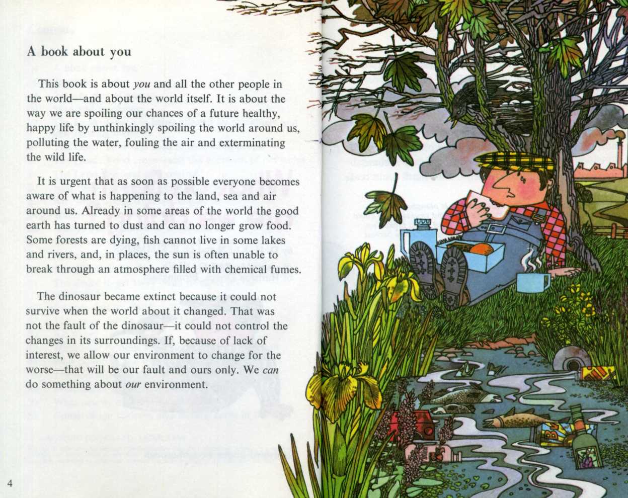 So here’s a little Ladybird book from the 1970’s warning us about the dangers of pollution. Now I know that people think that the whole global warming thing is just a conspiracy to stop you using your car, but I think even if it isn’t true (but it is) there’s no harm in trying to no use so much. That not putting toxic chemicals into waterways is not such a bad thing or an inconvenience. That maybe walking when you can, may do you and the planet good.